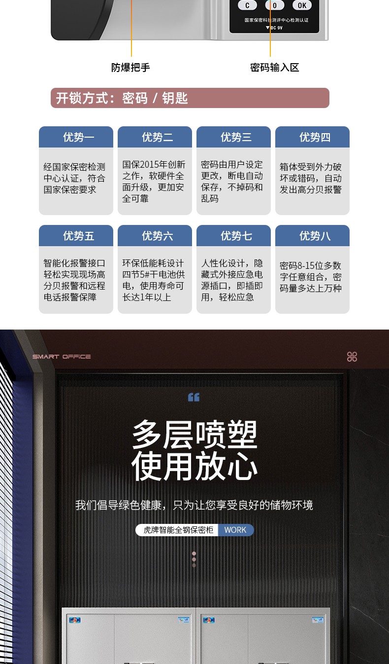 虎牌185S/B保险柜保密柜办公文件柜1.8米大型资料柜全钢带锁储物档案柜双保险电子密码指纹锁防盗柜通体带暗抽 通体四门 1.5mm 1850*900*430国保锁具-指纹款