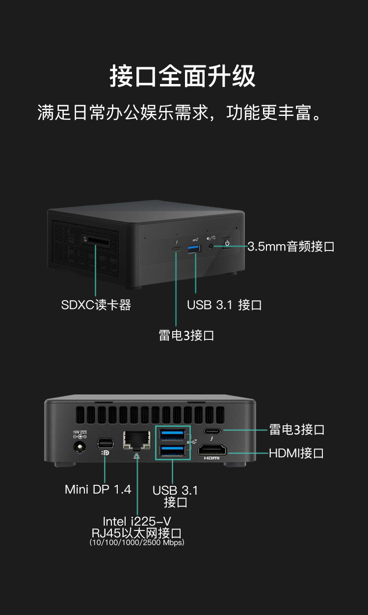 第11代英特尔(Intel)猎豹峡谷NUC11PAHi5商用办公迷你电脑主机/台式计算机i5处理器