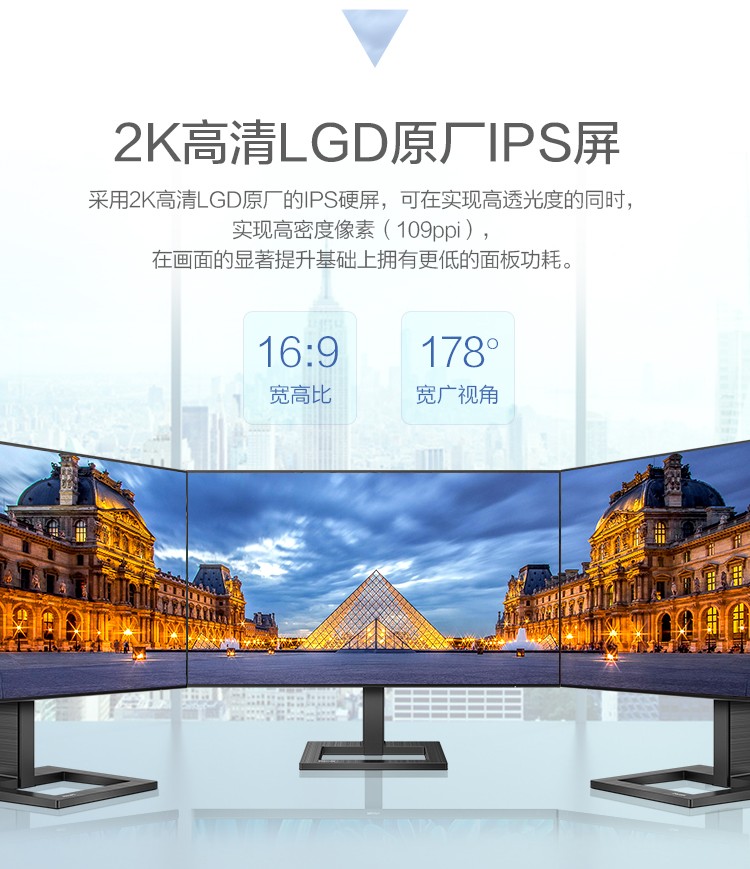 飞利浦 275E2FE 27英寸 2K高清 LGD-IPS 75Hz 高色域sRGB115.6% 四边微边框 HDMI可升降 液晶显示器