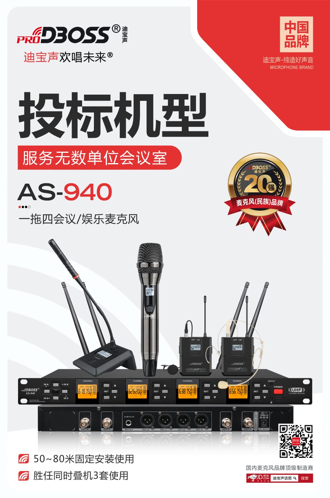 迪宝声/PRODBOSS AS-940 麦克 一拖四无线话筒